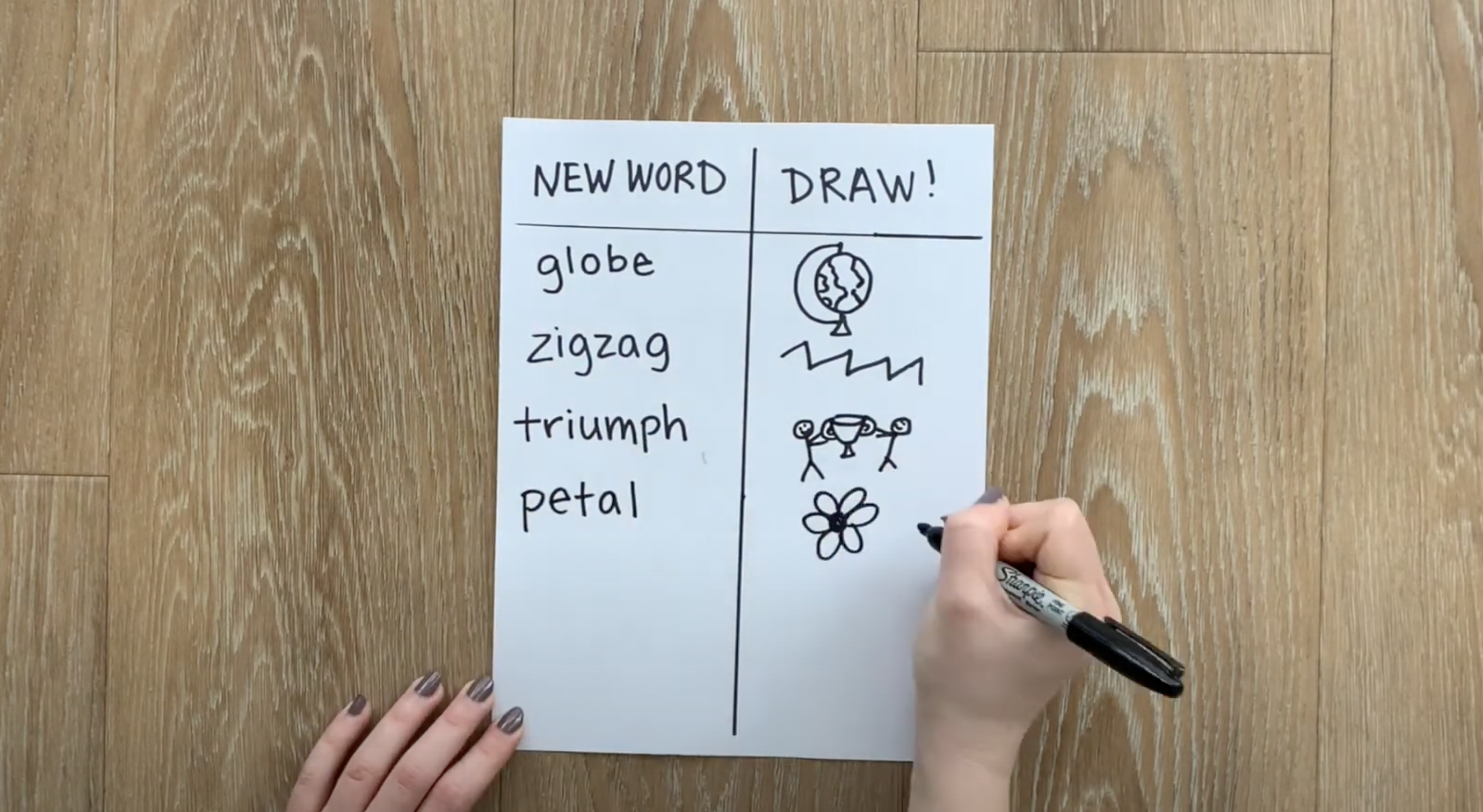 There are many ways to practice using and remembering new words outside of the classroom. All you’ll need for this vocabulary activity is a piece of paper, pen, and straight edge.